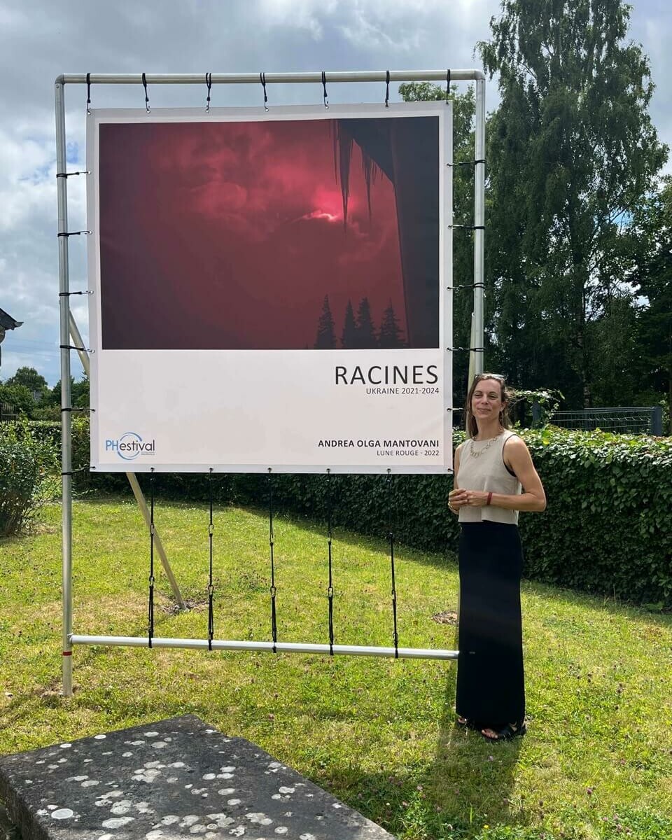 Andrea Olga Mantovani explore cette dissociation avec un procédé photographique singulier : sur son épaule gauche, un appareil chargé de pellicules argentiques périmées – l’œil de son aïeul André – ; sur son épaule droite, un appareil capturant des nuances de violet et de rouge, reflet de son regard contemporain. Le processus chimique altéré révèle des territoires contrariés, ceux de l’exil et des ruptures familiales. Un nouveau cycle commence, guidé par l’intuition : Racines.